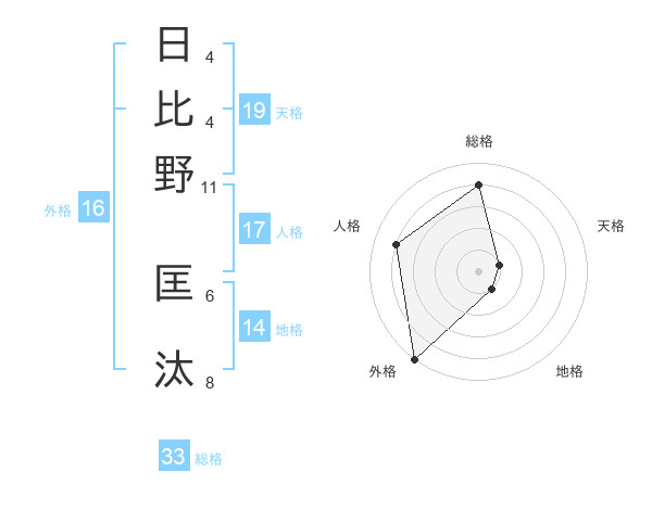日比野 匡汰さんを姓名の画数から五運を鑑定