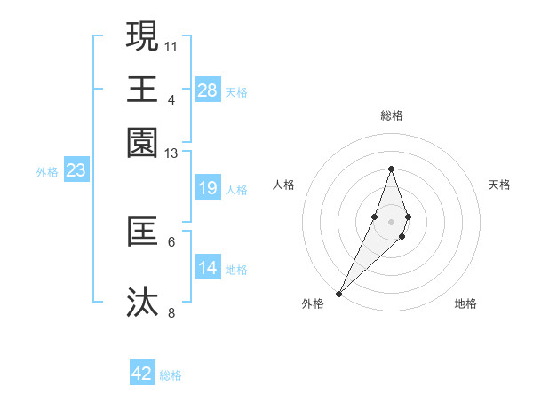 現王園 匡汰さんを姓名の画数から五運を鑑定