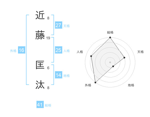 近藤 匡汰さんの総格は41画の5点!