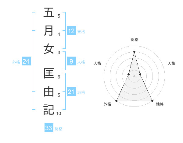 本サイトの鑑定結果の正当性は保証しません。鑑定結果は参考程度にお読みください。実際の名づけにご利用される場合は、姓名判断についてご自身でよくお調べください。