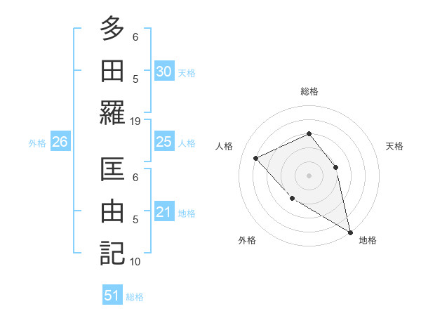 多田羅 匡由記さんを姓名の画数から五運を鑑定