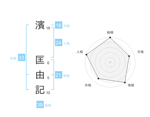 濱 匡由記さんの総格は39画の5点