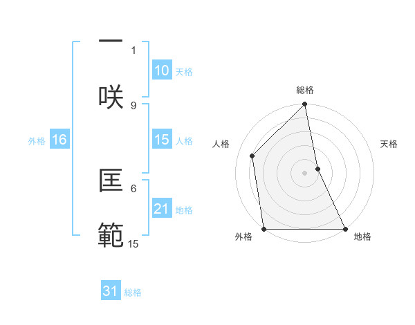 一咲 匡範さんを姓名の画数から五運を鑑定