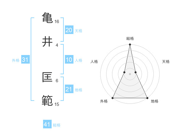 亀井 匡範さんの総格は41画の5点!