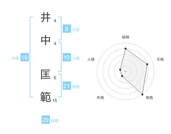 井中 匡範さんの総格は29画の4点!