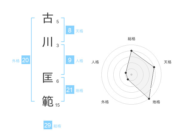 古川 匡範さんの総格は29画の4点!