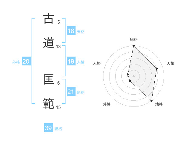 古道 匡範さんの地格は21画の5点!