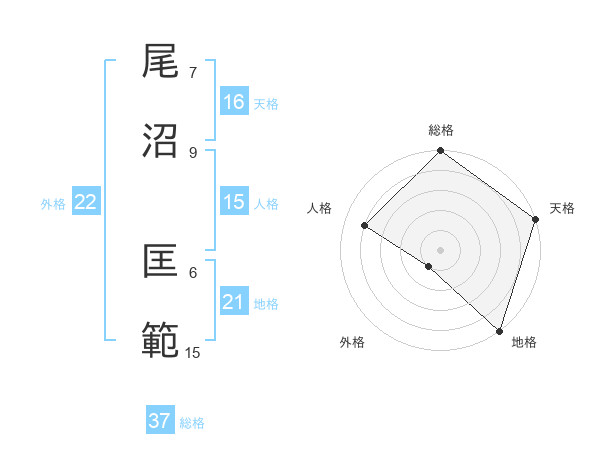 尾沼 匡範さんを姓名の画数から五運を鑑定