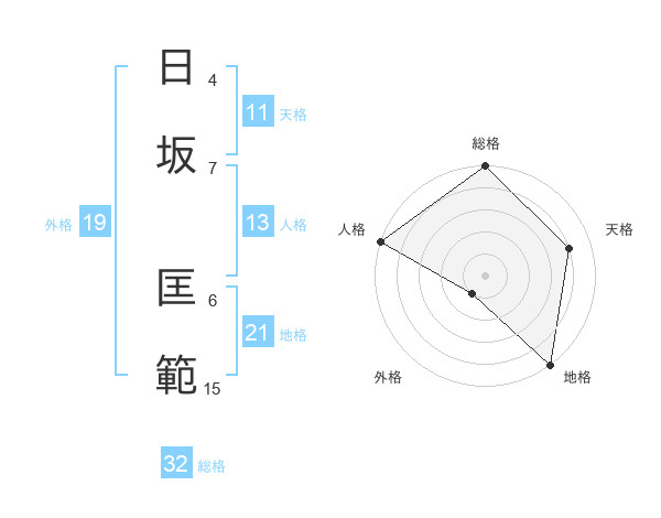 日坂 匡範さんの総格は32画の5点!