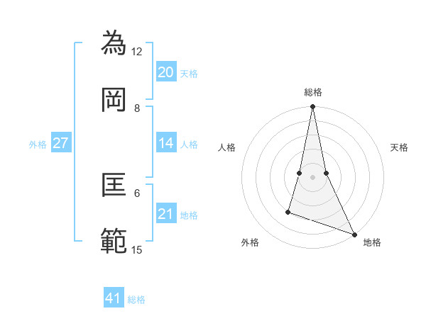 為岡 匡範さんを姓名の画数から五運を鑑定