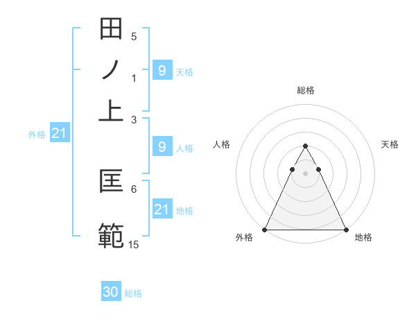 田ノ上 匡範さんを姓名の画数から五運を鑑定