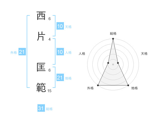 西片 匡範さんの総格は31画の5点!