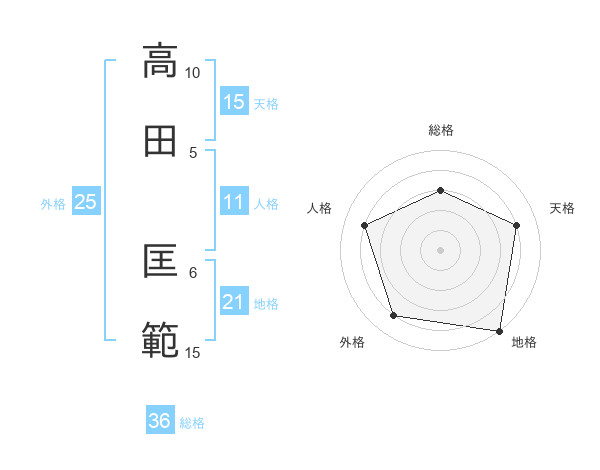 高田 匡範さんの総格は36画の3点!