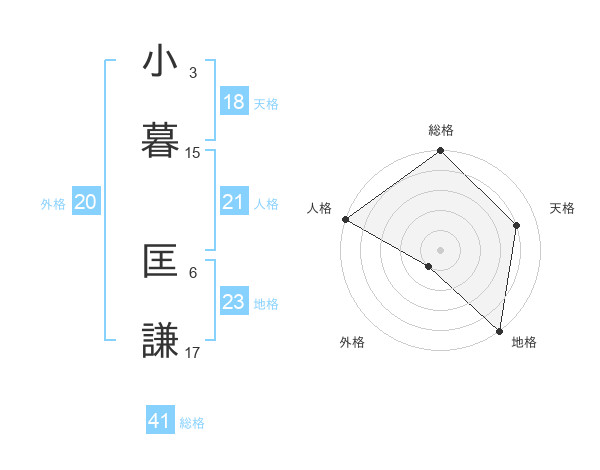 小暮 匡謙さんを姓名の画数から五運を鑑定