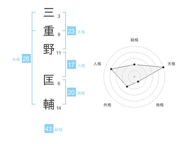 三重野 匡輔さんを姓名の画数から五運を鑑定