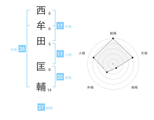 西牟田 匡輔さんを姓名の画数から五運を鑑定