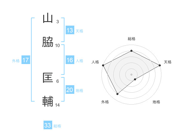 山脇 匡輔さんの総格は33画の4点!
