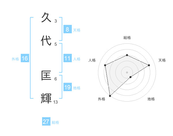 久代 匡輝さんを姓名の画数から五運を鑑定