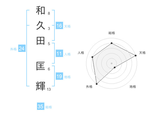和久田 匡輝さんを姓名の画数から五運を鑑定