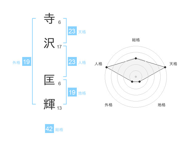 寺沢 匡輝さんの天格は23画の5点!