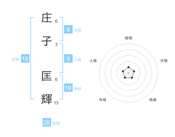 庄子 匡輝さんを姓名の画数から五運を鑑定