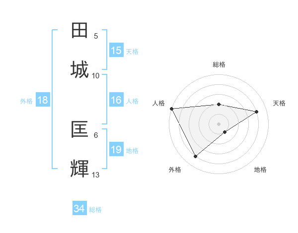 田城 匡輝さんを姓名の画数から五運を鑑定