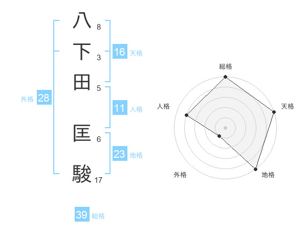 八下田 匡駿さんを姓名の画数から五運を鑑定