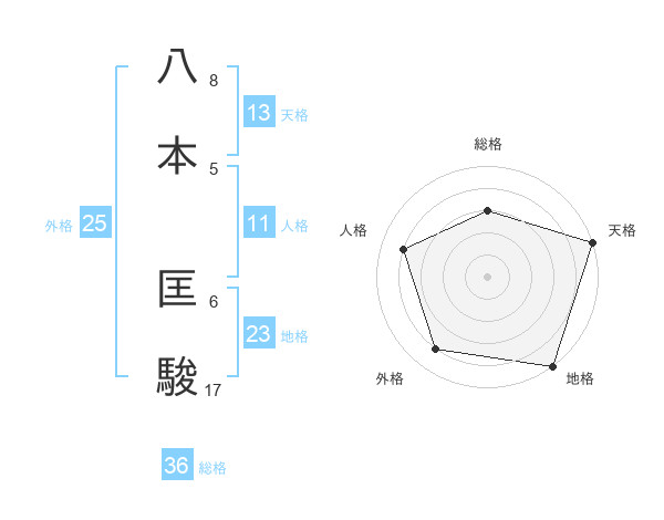八本 匡駿さんの天格は13画の5点!