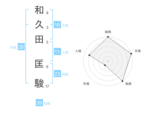 和久田 匡駿さんを姓名の画数から五運を鑑定