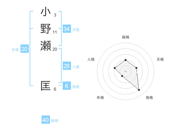 小野瀬 匡さんを姓名の画数から五運を鑑定