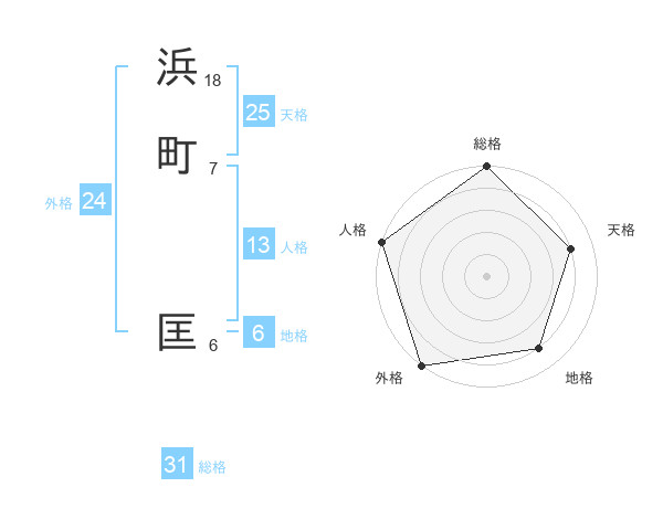 浜町 匡さんの総格は31画の5点!