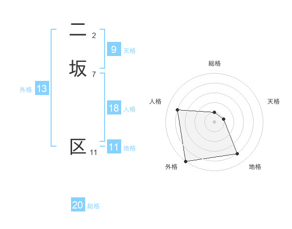 二坂 区さんの外格は13画の5点!