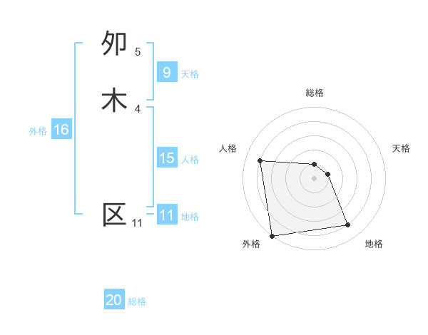 夘木 区さんの総格は20画の1点!