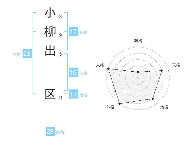 小柳出 区さんの外格は23画の5点!