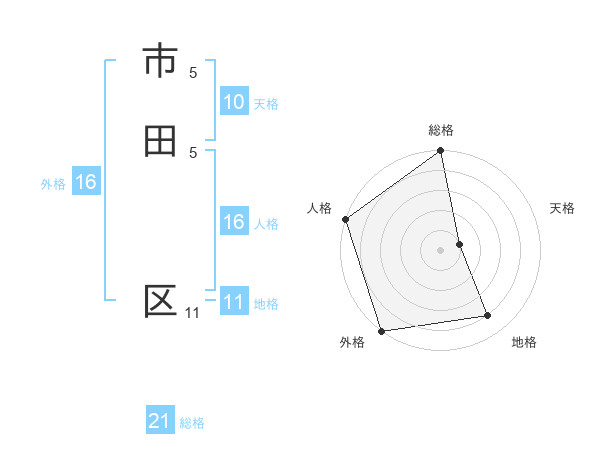 市田 区さんの総格は21画の5点!
