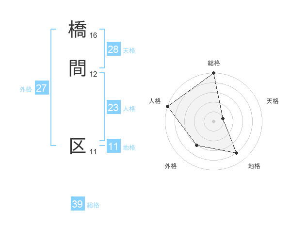 橋間 区さんの人格は23画の5点!