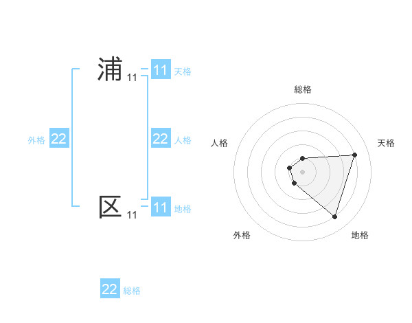 浦 区さんの総格は22画の1点!