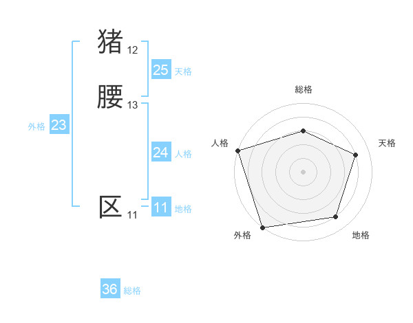 猪腰 区さんの総格は36画の3点!