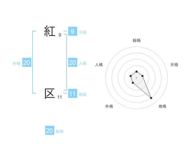 紅 区さんの総格は20画の1点!