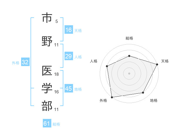 市野 医学部さんの総格は61画の3点!
