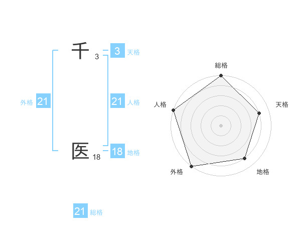 千 医さんの総格は21画の5点!