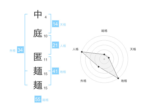 中庭 匿麺麺さんの天格は14画の1点