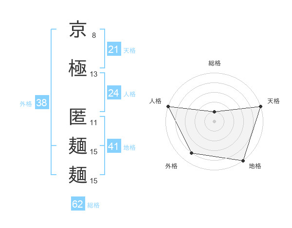 京極 匿麺麺さんの外格は38画の4点!