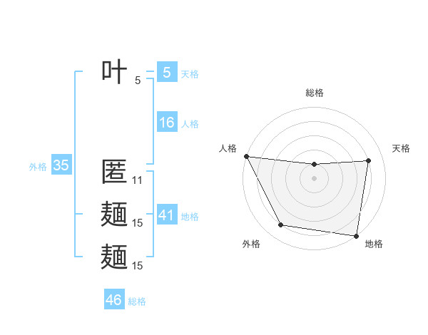 叶 匿麺麺さんの総格は46画の1点
