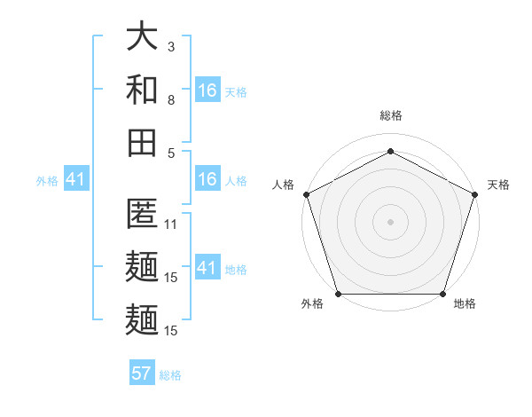 大和田 匿麺麺さんを姓名の画数から五運を鑑定