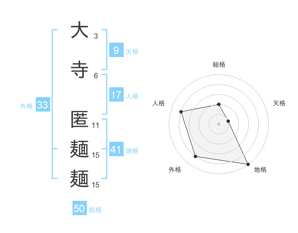 大寺 匿麺麺さんを姓名の画数から五運を鑑定