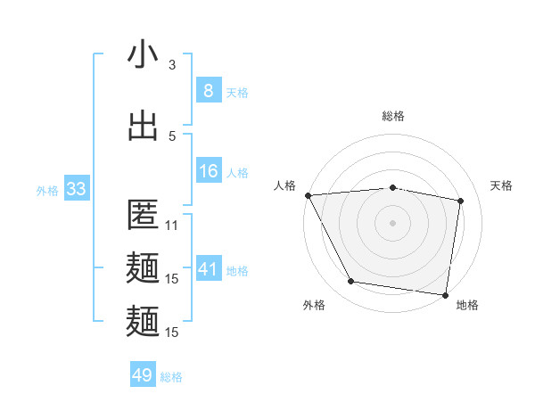 小出 匿麺麺さんの総格は49画の2点!