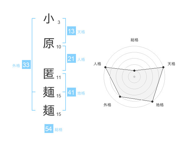 小原 匿麺麺さんを姓名の画数から五運を鑑定