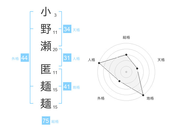 小野瀬 匿麺麺さんを姓名の画数から五運を鑑定