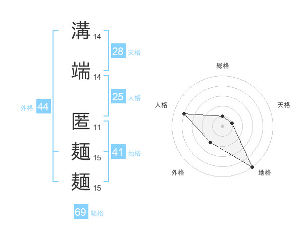 溝端 匿麺麺さんの総格は69画の1点!